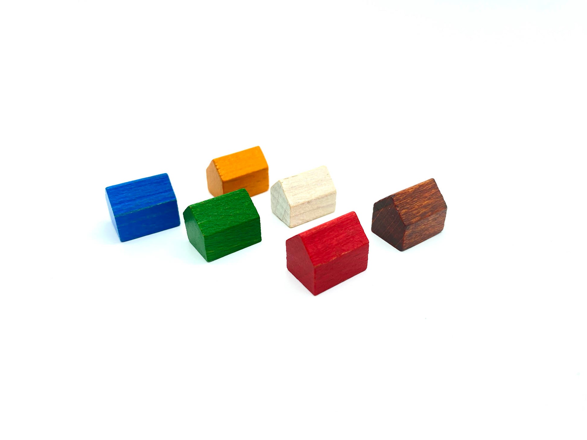 Individual Catan settlement replacement part. Each unit is one (1) settlement piece of the selected color. Parts are used.